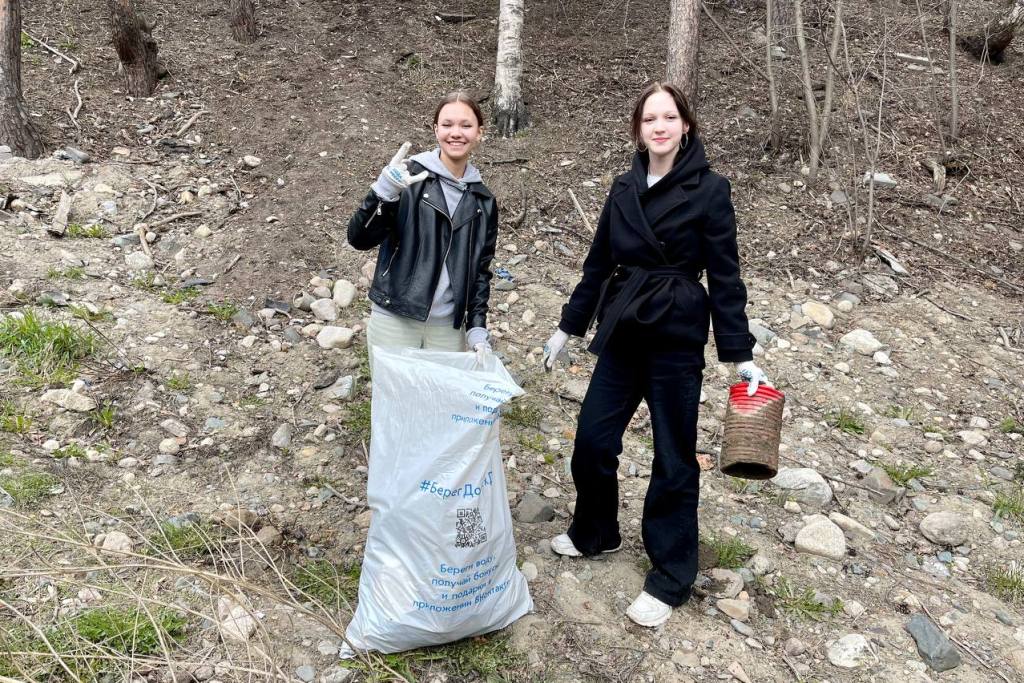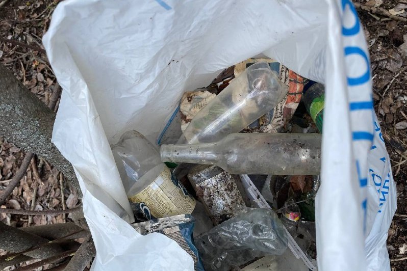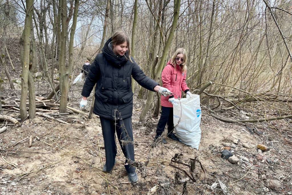Это была не простая уборка мусора. За час 50 ребятам из 8А, 8Б и 10А надо было собрать вторсырье, которое пригодно для переработки. С энтузиазмом они соревновались, кто соберет больше пластика, стекла, металла. У каждой команды были ленточки своего цвета – ими ребята завязывали мешки со вторсырьем и приносили в точку сбора.