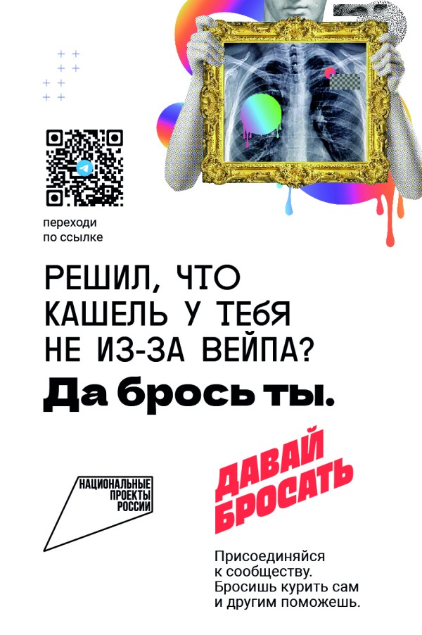 Сказать «нет» курению электронных сигарет, вейпов и иных устройств помогает сообщество «Давай бросать», которое развивается по нацпроекту «Продолжительная и активная жизнь».