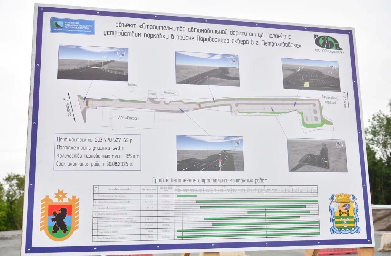 Парковка рассчитана на 165 машино-мест. Сейчас здесь идут основные работы. Ход строительства проверили сегодня министр по дорожному хозяйству, транспорту и связи Карелии Дмитрий Крылов и глава Петрозаводска Инна Колыхматова.